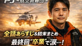ドラマ『PJ~航空救難団~』全9話のあらすじと見どころを凝縮。12年前の事故の真相や最終回の結末、スピンオフ「仁科蓮 最後の任務」まで徹底解説。救難員たちの絆と、主任教官・宇佐美(内野聖陽)が伝えた“救う覚悟”をもう一度振り返りましょう。